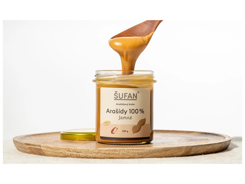 V chuti čistého arašídového másla bez zbytečných ingrediencí se není za co schovávat, všechno se odvíjí od napražení arašídů. To máme v ŠUFANu pevně pod kontrolou a proto má naše máslo krásně zlatavý odstín, je dokonale roztíratelné a přirozeně nasládlé bez stopy hořkosti. Připomíná chuť tradičních amerických arašídových másel.
