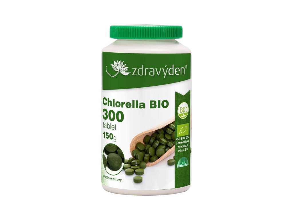BIO chlorella Zdravý den® v tabletách. Chlorella je sladkovodní jednobuněčná řasa při jejímž pěstování se dbá na správné postupy a kvalitu vody. Vždy se jedná o šetrné procesy, které zachovávají všechny aktivní látky obsažené v řase. Doplněk stravy.