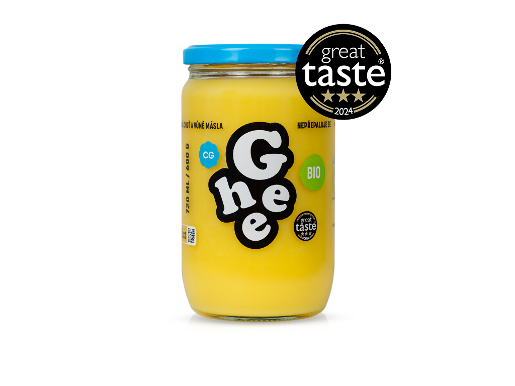 A to je pro nás opravdu důležité. Bio Ghee poznáte na první pohled – je totiž žlutější než to klasické. A pokud je zrovna uvařené z grass-fed, ta žlutost na vás bude ze spíže vyloženě zářit. S tím samozřejmě do Ghee propašujeme i větší množství vitamínů a také kyselinu CLA.