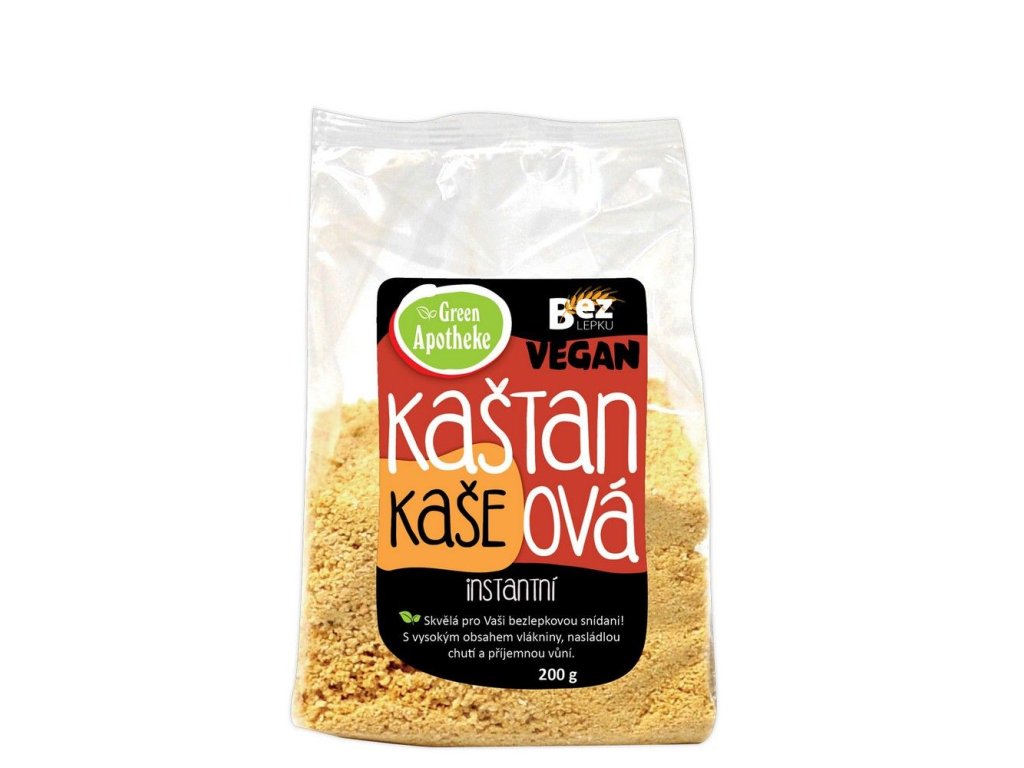 Skvělá pro Vaši bezlepkovou snídani! Nasládlá a chuť a vůně jedlých kaštanů pro zpestření Vašeho jídelníčku. Kaštany jsou jedlým plodem kaštanovníku, neobsahují lepek a mají vysokou výživovou hodnotu. Dodávají kaši výjimečnou, přirozeně nasládlou chuť, kterou můžete dále doplnit přídavkem oříšků či sušeného ovoce. Zařazení: Extrudovaný výrobek bez lepku Složení: Rýže, kaštanová mouka 27%, rýžový sirup. Příprava: Přidejte pouze teplé mléko nebo vodu, zamíchejte a nechte 2-3 minuty odstát. Již nevařte! Skladování: Skladujte v suchu, chraňte před přímým slunečním zářením. Výživové údaje ve 100 g výrobku: Energetická hodnota 1505 kJ/ 355 kcal, tuky 1,4 g (z toho nasycené mastné kyseliny 0,2 g), sacharidy 77 g (z toho cukry 8,4 g), vláknina 3,6 g, bílkoviny 6,8 g, sůl <0,01g. Hmotnost netto: 200g Výrobce: MEDIATE, s.r.o., Libchavy 561 16, ČR, www.apotheke.czDoplňkové parametry