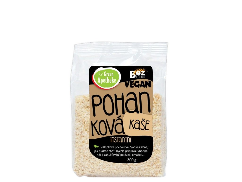 Bezlepková pochoutka. Sladká i slaná, jak budete chtít. Vhodná též k zahušťování polévek a omáček…Pro snadnou a rychlou přípravu chutné bezlepkové kaše. Vhodná také na zahušťování polévek a omáček, podobně jako jíška. Zařazení: Extrudovaný výrobek bez lepku Složení: Pohanka loupaná. Objem výrobku se může u různých šarží i výrazně lišit, deklarovaná hmotnost je však garantována. Tyto rozdíly jsou způsobeny technologií výroby. Příprava: Přidejte pouze teplé mléko nebo vodu, zamíchejte a nechte 2-3 minuty odstát. Již nevařte! Skladování: Skladujte v suchu, chraňte před přímým slunečním zářením. Výživové údaje ve 100 g výrobku: Energetická hodnota 1563 kJ/ 370 kcal, tuky 2,6 g (z toho nasycené mastné kyseliny 0,6 g), sacharidy 70,0 g (z toho cukry 0,6 g), vláknina 4,9 g, bílkoviny 14,0 g, sůl <0,01g. Hmotnost netto: 200g Výrobce: MEDIATE, s.r.o., Libchavy 561 16, ČR, www.apotheke.czDoplňkové parametry