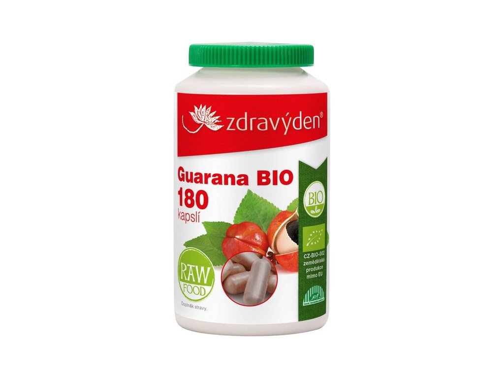 BIO guarana Zdravý den® v kapslích se vyrábí ze semen popínavého keře Paulinie nápojné (Paullinia cupana) pěstované v Brazílii podle pravidel ekologického zemědělství. Guarana pozitivně ovlivňuje fyzickou i psychickou vitalitu člověka, zvyšuje jeho energii a působí proti únavě. Má příznivý vliv na imunitní systém, kontrolu tělesné hmotnosti a metabolismus tuků. Napomáhá normálnímu trávení. Je vhodná pro vegetariány i vegany.
