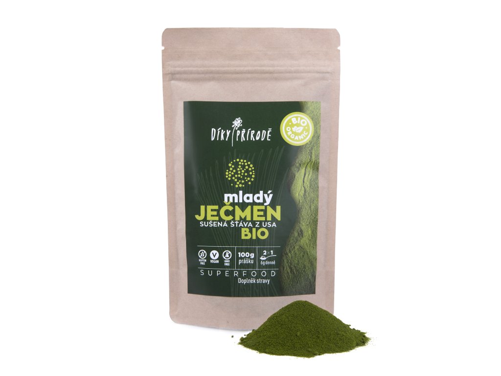 Prášek z mladého ječmene získaný sušením za studena vylisované šťávy z mladých zelených výhonků ječmene. Mladý ječmen je pěstován podle pravidel ekologického zemědělství v kdysi vulkanicky aktivní oblasti v organické půdě bohaté na minerály na území bývalého solného jezera v Utahu v USA.