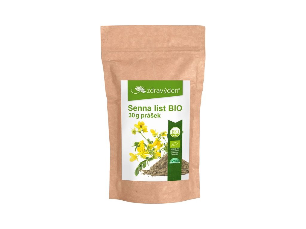 BIO čaj z prášku listů senny Zdravý den® má lahodnou chuť. Napomáhá normální funkci střevního traktu a působí jako antioxidant.