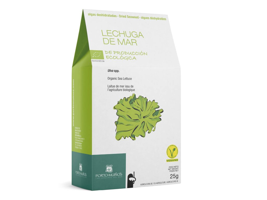 Morské riasy od spoločnosti Porto-Muiños sú pestované a zbierané podľa pravidiel ekologického poľnohospodárstva a nesú označenie BIO. Ide o regulovaný a udržateľný ručný zber morských rias vo voľnej prírode. Riasy sa sušia pri nízkych teplotách pre zachovanie živín. Kontrolované: SK-BIO-002. Poľnohospodárska výroba EÚ.